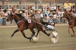 September 4 - Lass Chance (Andover Hall - Lady Windsong) finished a strong third after a very tough trip in the $134,926 Simcoe Stakes at Mohawk today. Starting from Post 8, Lass Chance was 6th by 10 lengths by the 1/4 pole for driver Luc Ouellette. Making a three wide move from 7th at the 3/4 pole, Lass Chance finished her last quarter strongly in 28.3 seconds (fastest in the field) to make up 4 lengths on the eventual winner, and finish a very respectable third while timed in 1:57.1. Her lifetime earnings now stand at $31,677.
